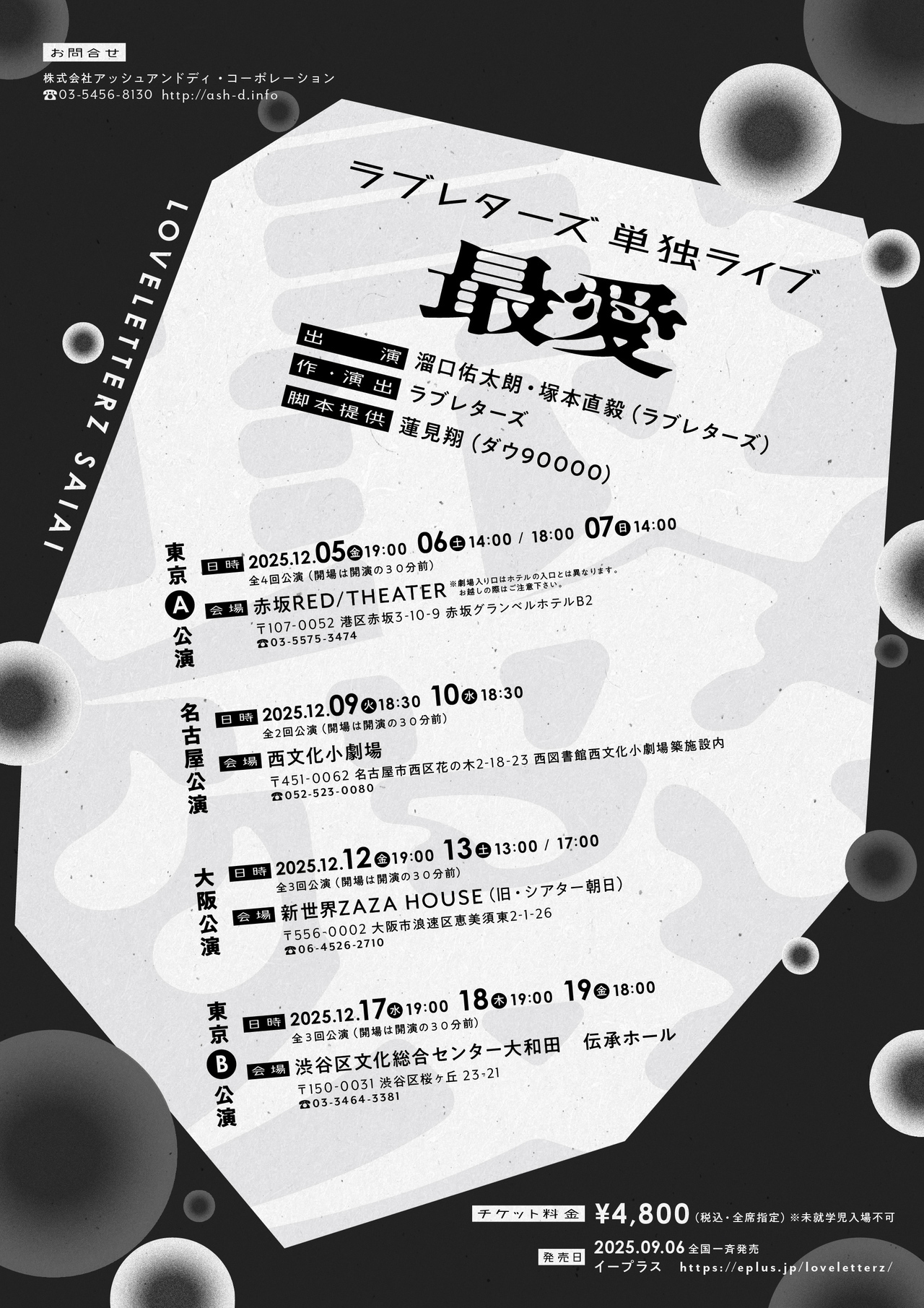 ※宅配の際は、『赤坂グランベルホテルフロント 劇場担当者』宛にてお願いいたします。